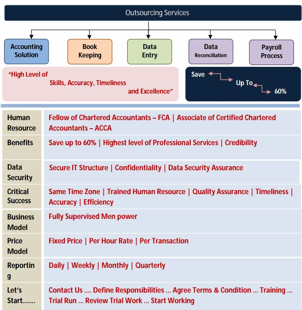 The procedure of co-ordination is simpler to understand and easier to adopt. You will provide us the information on particular document on daily basis and you will get an un-expected range of modern Accounts and Financial reports in your E. Mail Box, which may be printed and presented any where in the world.